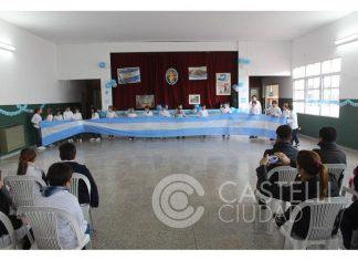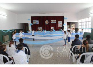 El Intendente concurrió esta mañana a la Escuela N°1 Domingo F. Sarmiento donde los alumnos de 4to grado que el lunes prometieron a la Bandera, participaron del acto escolar y realizaron coreografías con temáticas vinculadas a la fecha.
