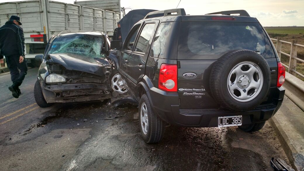 Un fuerte choque se registro alrededor de las 14 40 hs en el km 22 de la ruta 74 cuando un auto Chevrolet Corsa colisiono de frente con una camioneta Ford Ecosport