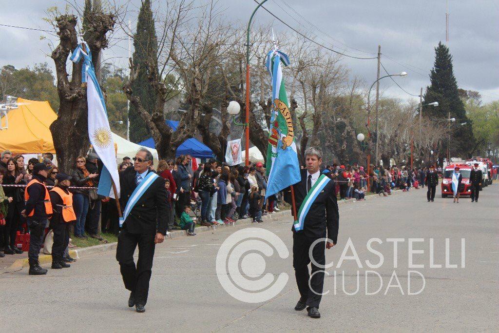 En ese contexto, y en medio del desfile, todos los intendentes se refirieron a Castelli, haciendo hincapié en la fortaleza y gestión de Echarren, destacando los logros obtenidos durante el período de mandato del actual Intendente.