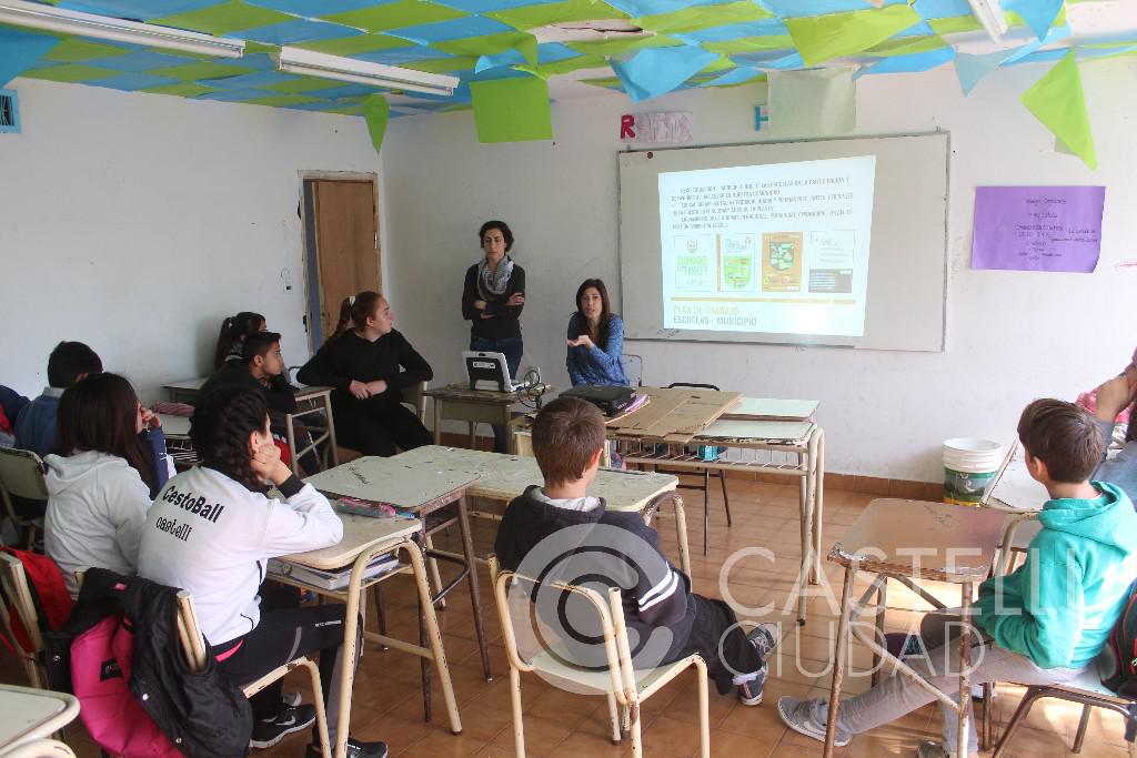 Esta mañana, en el marco del Programa de Gestión Integral de Residuos Sólidos Urbanos (GIRSU), se llevó a cabo la primer charla informativa a los alumnos de 2do A de la Escuela Secundaria N° 1, a cargo de la directora de Producción, Mariana Santoro, y la Jefa de Medio Ambiente, Laura Majirena, junto a la profesora Cristina Forte.