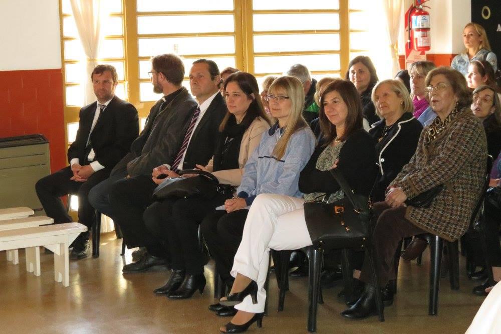 Se descubrió una placa de ex alumnos, en representación de ellos lo hicieron Agustina Cáffaro y Antonella Mayerna. Por la Asociación Cooperadora y el equipo de docentes descubrieron el Presidente de la Cooperadora Fabián Etchevest, Mónica Ramírez y las Docentes Alesia Cáffaro y Paola Speroni. Por el Rotary Club su Presidente Carlos María Lamacchia y Willy Crippa. La placa del Municipio fue descubierta por el Intendente Camilo Etchevarren, el Presidente del Consejo Escolar Gastón Garófalo y la Secretaria del establecimiento María Angélica López. La Bendición la realizó el Presbítero Maximiliano Turri.