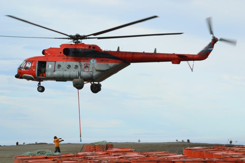 Durante extensas jornadas y bajo rigurosas condiciones meteorológicas, las alas rotativas de la fuerza realizaron la descarga desde el buque Aviso ARA “Estrecho de San Carlos” de la Armada Argentina, del combustible que requiere la Base Marambio para su funcionamiento y del correspondiente a las máquinas que componen la dotación aérea.