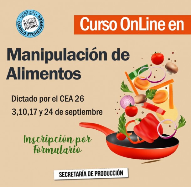 Modalidad virtual, cuatro clases los días 3, 10, 17 y 24 de septiembre. Dirigido a todo aquel que esté trabajando con alimentos para su comercialización. La certificación tendrá validez oficial en todo el territorio provincial y estará vigente hasta el 31 de diciembre del 2020. A partir del mes de enero de 2021, cada capacitado podrá acceder al carnet de manipulador de alimentos. Para ello deberá aprobar una evaluación presencial.