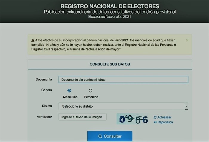 Ya se puede consultar el padrón electoral provisorio para las elecciones 2021
