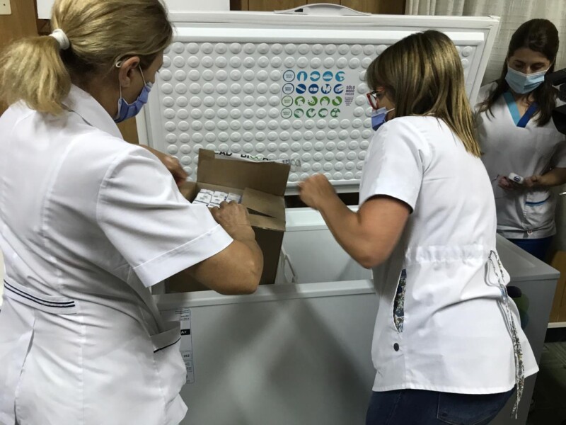 Sandra Metz indicó que “arribaron las primeras 450 dosis de vacunas, junto con jeringas, folletería y todo lo que necesitamos para empezar a vacunar. Las mismas serán destinadas al personal de salud entre 18 y 59 años, para instituciones públicas y privadas, como lo indica el protocolo”.