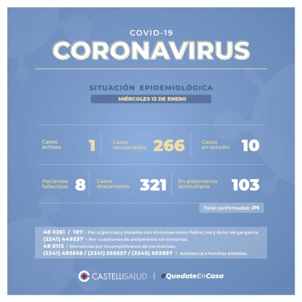 ✅ El total es de 1 caso positivo activo, 266 casos recuperados, 8 personas fallecidas, 10 casos en estudio, 321 casos descartados y un total de 103 personas aisladas de forma preventiva.