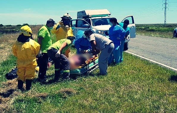 El accidente sucedió en la Ruta 11 en sentido a Mar Azul. Un vehículo, con tres mujeres y un can despistó y terminó volcado en una zanja.
