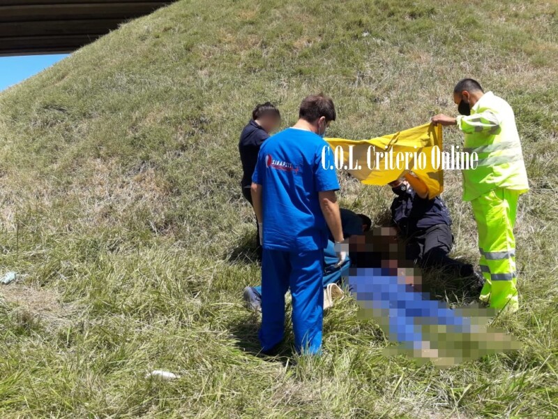 Por causas que se tratan de establecer, una mujer de 43 años de edad, cayó del distribuidor de Lamadrid y ruta 2; Afortunadamente no fue en el asfalto sino que al caer , quedó en la zona de pasto.