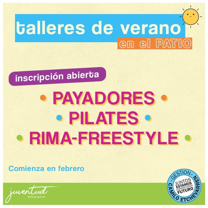 La Dirección de Juventud suma nuevas actividades a los talleres de verano payadores, pilates, rima y freestyle. También se continúa con zumba, plástica niños, danzas clásicas, danzas árabes y restauración de muebles.