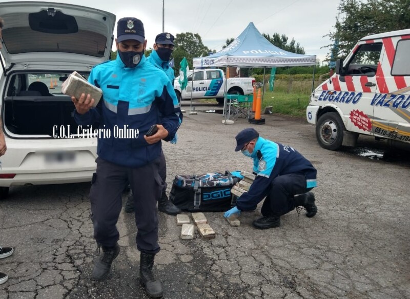 Tras comprobar la existencia de 50 paquetes con un pesaje de más de 36kg de marihuana en el interior de un bolso y en el interior del rodado, más precisamente en los paneles de puerta, quedaron detenidos e incomunicados.