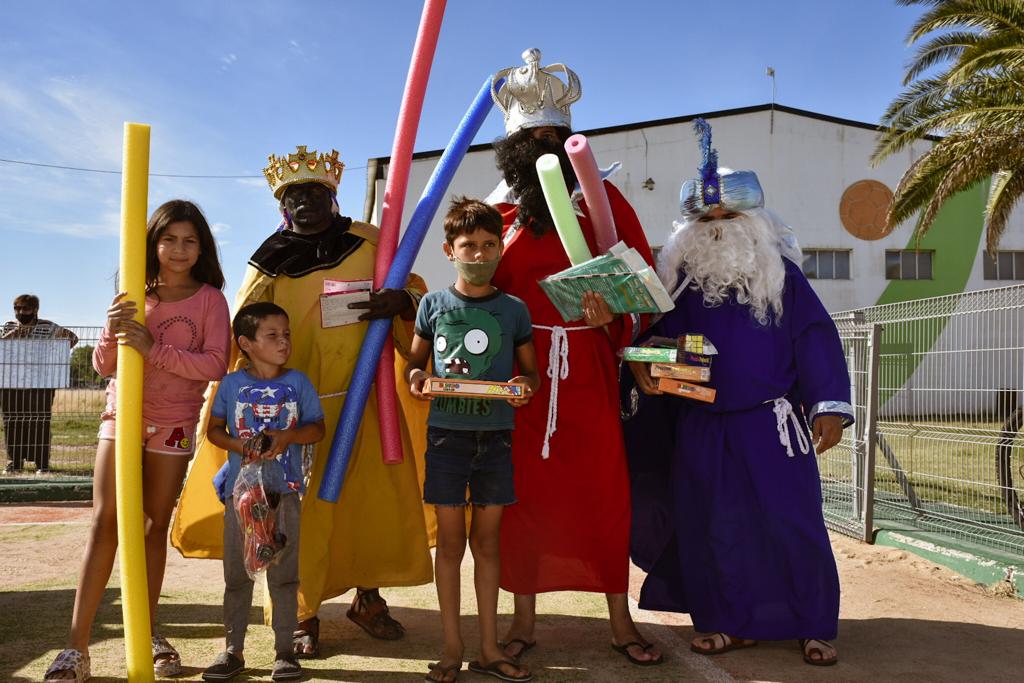 Pese a la pandemia, los chicos tuvieron su tarde de alegría, música y regalos junto a los Reyes Magos.