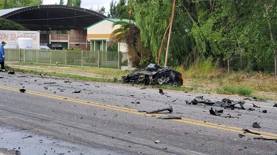El impacto tan violento que algunas partes del auto quedaron esparcidas sobre una gran superficie de la cinta asfáltica mientras que el resto del rodado quedó completamente destruido sobre la banquina.