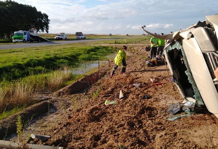 Un despiste y posterior vuelco se produjo este martes alrededor de las 17:30 en el kilómetro 8 de la Ruta 56.
