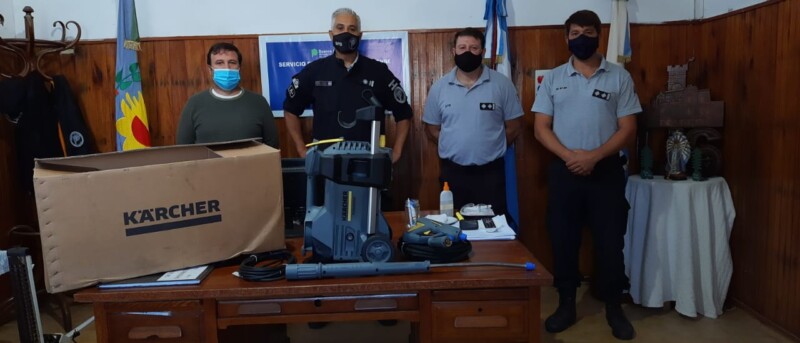 Desde la Subdirección Gral. de Trabajo Penitenciario del S.P.B., a cargo de Pablo Gascue, el Sr. Jefe del Complejo Penitenciario Zona Este, Horacio Pascual Lettieri y el Director de la Unidad, Emilio Lupo; agradecen la Hidrolavadora Industrial kARCHER HD5/MP recibida, un recurso muy valioso que posibilitará concretar diversas actividades tratamentales planificadas y poner nuevamente en funcionamiento el lavadero de este Establecimiento, a la par de estimular la cultura laboral y el aprendizaje de oficios.