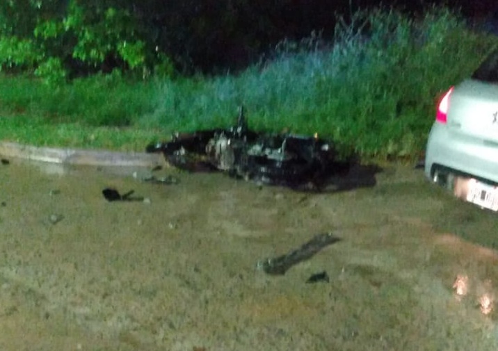 Hace minutos por motivos que se intentan determinar, colisionaron en Belgrano y Pierrou un auto Peugeot 308 conducido por un masculino y una moto yamaha Cripton 125.