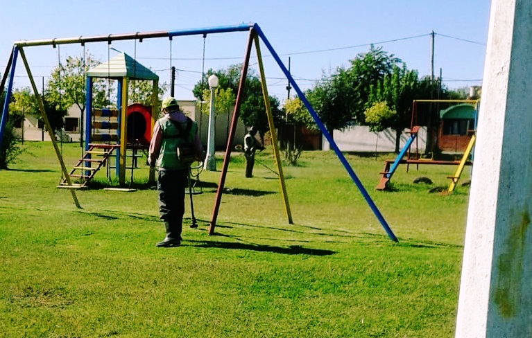 Personal de la Dirección de Espacios Verdes efectúa tareas de mantenimiento en las Plazas Congreso de Tucumán, Independencia, Bicentenario, Irigoyen, Expedición Atlantis, Parque Libres del Sur y Paseo de la Guitarra.