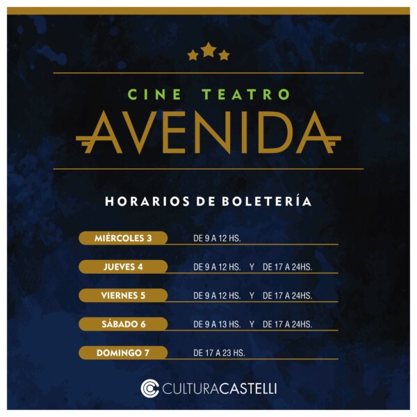 Las funciones serán con capacidad limitada, y se ajustarán a los protocolos sanitarios establecidos por las autoridades de salud de la Nación y la Provincia. La venta de entradas se realiza en la boletería del Cine Teatro Avenida de miércoles a sábado de 9 a 12hs y de jueves a domingo de 17 a 00hs.