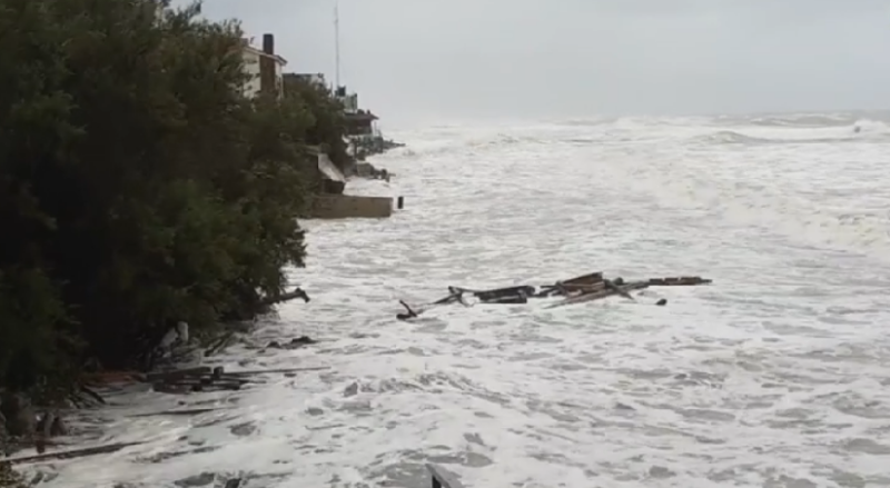 En las imágenes se ve que el agua superó la zona de playas y médanos y arrastró todo lo que encontró a su paso, mucho viento y clases suspendidas.