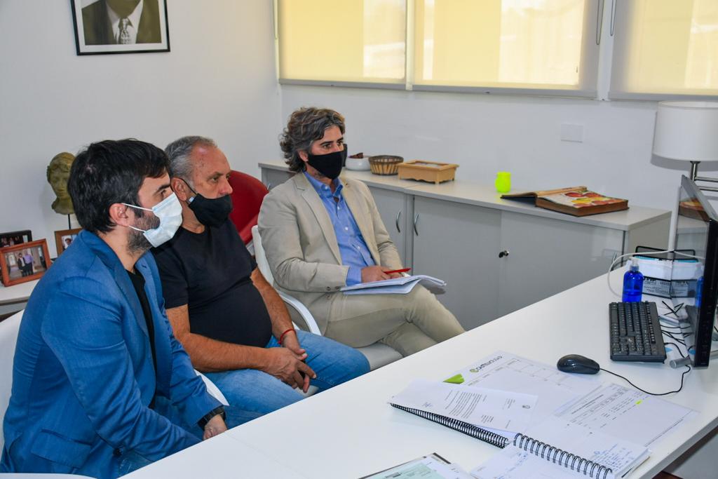 A través de videoconferencia, el Intendente Francisco Echarren junto al Secretario de Campo y Producción Ignacio Larralde y al Subsecretario de Obras Públicas Federico Longhi, participaron del anuncio del convenio que otorga casi 100 millones de pesos para la mejora de los caminos rurales de Castelli.