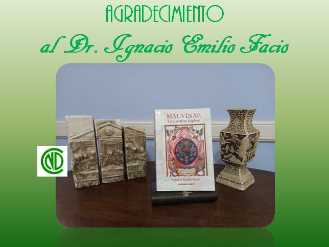 El ejemplar, sin dudas, enriquecerá nuestra Biblioteca Ramón Melgar y será objeto de consultas para todo lector que desee investigar la justa causa nacional de Malvinas en defensa del ejercicio de soberanía avasallado por fuerzas británicas al ocupar nuestras Islas Malvinas, expulsando a la población y autoridades argentinas allí establecidas, y reemplazándolas por otras de origen británico.
