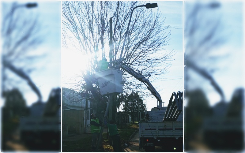 Personal del Departamento de Electricidad Municipal continúa instalando iluminación LED. Ya cuentan con el servicio calle Paz entre Machado y Pilotto y Pringles entre Pilotto y Washington.