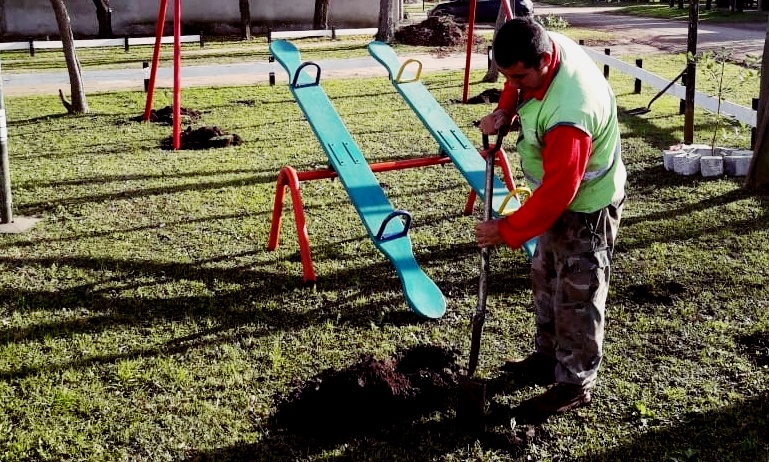 Personal de la Dirección de Espacios Verdes realizó la colocación de los juegos en el sector destinado a una plaza en calle Abel Fleury y pasaje La Amistad. Las tareas continuarán la próxima semana en el otro sector del barrio San Cayetano que también está destinado a recreación, contando con dos espacios del que podrán disfrutar niños y adultos.