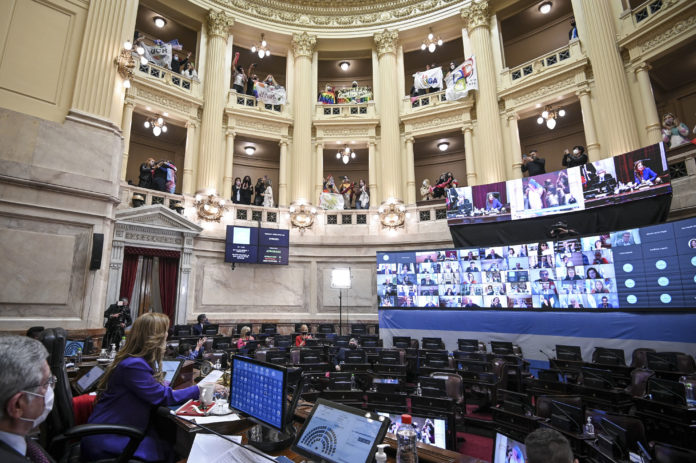 Votacion del proyecto de Ley de Promoción del Acceso al Empleo Formal para Personas Travestis, Transexuales y Transgenero "Diana Sacayán - Lohana Berkins"; en el recinto del Senado de la Nacion, el 24 de Junio de 2021, Buenos Aires, Argentina. (Fotos: Charly Diaz Azcue / Comunicación Senado)