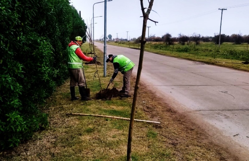 Personal de la Dirección de Espacios Vedes comenzó con la reforestación en calle Argel (ex Lara), se están colocando plantas de fresno y ceibo. Las tareas se realizan en el marco del Programa Dolores Ciudad Verde que lleva adelante el Intendente Camilo Etchevarren.