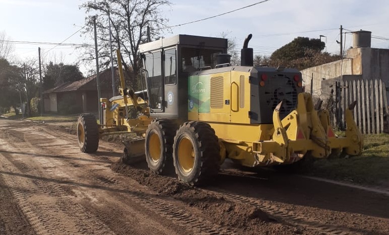 Personal de la Secretaría de Obras Públicas con motoniveladora realizó mejoras en calle Bolívar.