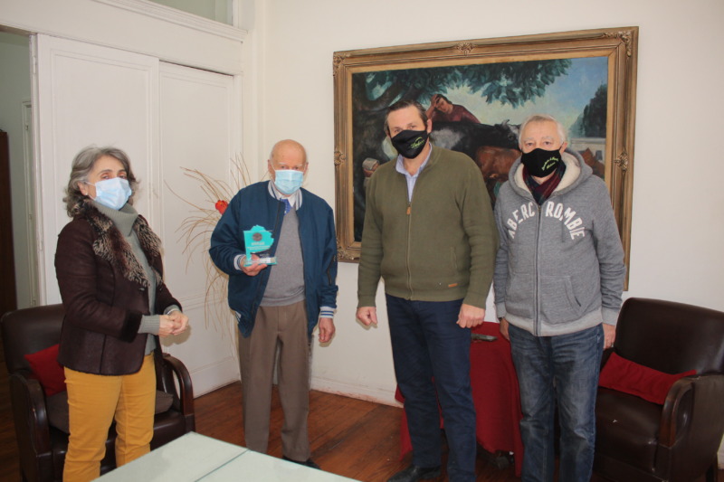 El Intendente Camilo Etchevarren, la Jefe de Gabinete María Susana Andera y el Secretario de Deportes José María Cremonte, le hicieron entrega de la plaqueta por el segundo premio obtenido en los Juegos Bonaerenses 2020, al historiador, poeta y escritor Juan Carlos Pirali, que se la adjudicó en la disciplina poesía.