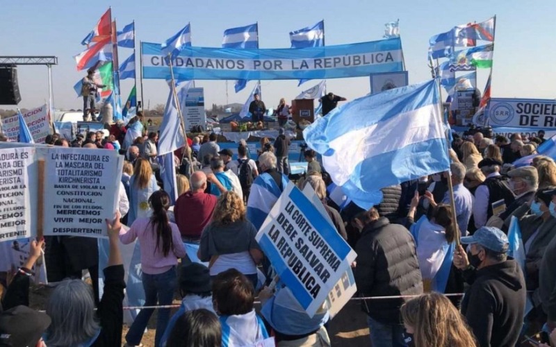 Durante el acto, los organizadores mostraron sus disidencias también por las restricciones que complican el funcionamiento de comercios e industrias.