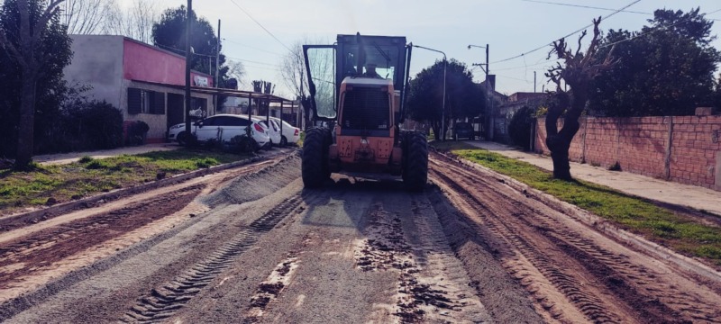 Con máquinas de la Secretaría de Obras Públicas se realizan mejoras en calle Pierrou entre Sarmiento y Ricchieri.