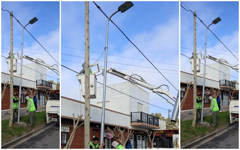 Integrantes del Departamento de Electricidad siguen colocando columnas e iluminarias LED, en sectores que fueron anunciados por el Intendente Camilo Etchevarren. Ya cuentan con el servicio Rípodas entre Robecco y Selva, Arditti entre Ulke y Rípodas.