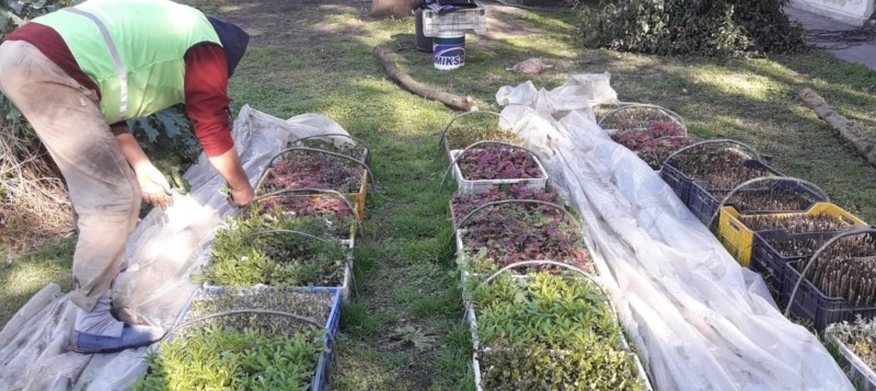 Personal de la Dirección de Espacios Verdes que trabaja en el sector Vivero Municipal, realiza limpieza de esquejes de diferentes variedades. Se colocan en cajones para un mejor mantenimiento ya que cada uno cuenta con trescientos esquejes, que llevarán entre dos y tres años para su utilización en los parques y plazas. Las tareas se realizan en el marco del Programa Dolores Ciudad Verde que lleva adelante el Intendente Camilo Etchevarren.
