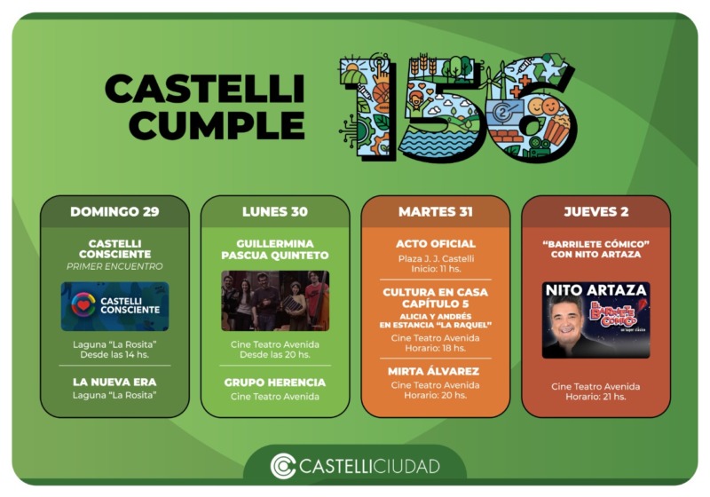 Con el siguiente programa se llevara a cabo la celebración del aniversario 156 de nuestro partido. Para la oportunidad se llevaran a cabo los siguientes eventos y actividades