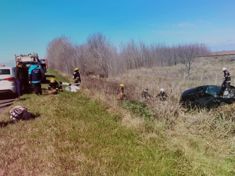 Por razones que se tratan de establecer la conductora que viajaba con otra femenina, perdió el control de su auto y terminó cerca del alambrado de un campo.