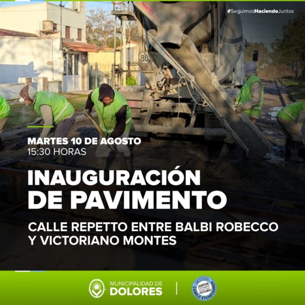El Intendente Camilo Etchevarren, informó que el martes 10 de agosto a las 15.30 horas se inaugura el pavimento de calle Repetto entre Balbi Robecco y Victoriano Montes.