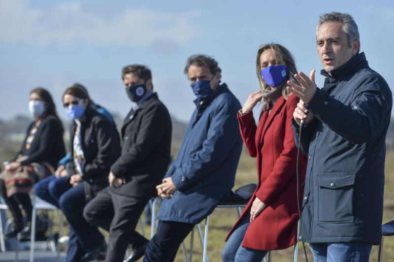 El gobernador Axel Kicillof y el Ministro de Desarrollo de la Comunidad Andrés Larroque junto a ministros nacionales y provinciales, presentaron este viernes el Plan de Desarrollo Urbano Planificado y Sostenible para la creación de un nuevo barrio en la localidad de Guernica.