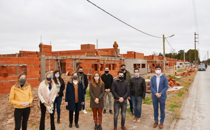 La visita inició con el recorrido del Barrio Eva Perón, que forma parte del importante plan de Viviendas donde 80 vecinos y vecinas de Castelli van a tener sus hogares.
