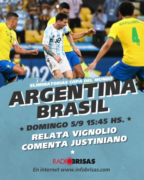 Domingo 5 de septiembre, desde las 15.45 horas, por Radio Brisas, Brasil-Argentina. Relata Eduardo Vignolio, comenta Justiniano.