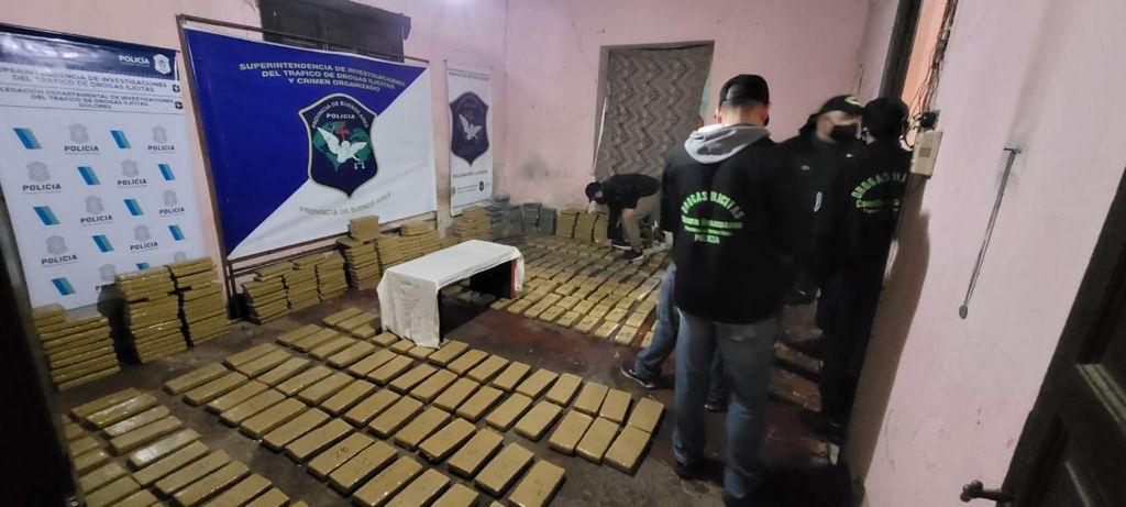 Tras un allanamiento, personal de la Delegación Drogas Ilícitas Dolores, con efectivos de la Delegación La Plata, allanaron una vivienda situada en inmediaciones de calle 134 entre 512 y 513 de José Hernández, de La Plata, donde secuestraron casi 800 kilos de Marihuana, una escopeta lista para disparar y balanza de precisión.