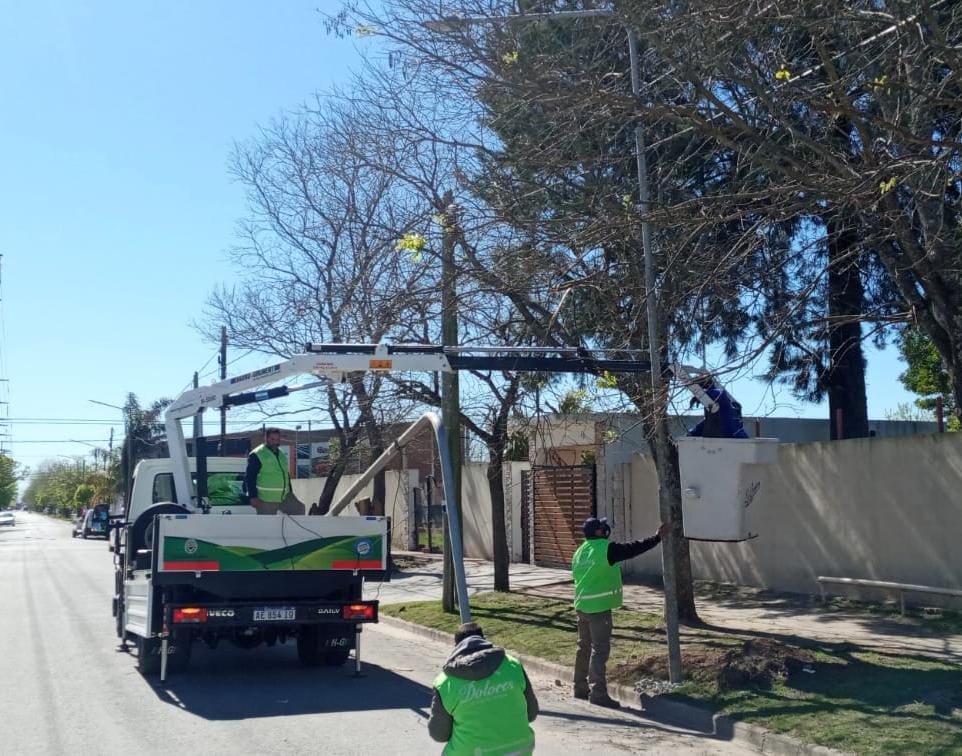 Personal del departamento municipal de electricidad continúa colocando iluminación LED en los sectores donde informó que se llegaría con la mejora el Intendente Camilo Etchevarren.