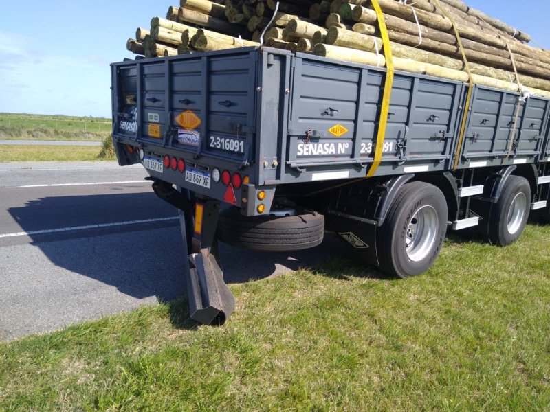 Una Chevrolet color negro colisionó contra la parte trasera de un camión Semirremolque, con carga de postes de madera.