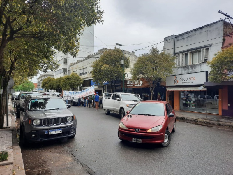 Este viernes, los comerciantes cortaron una mano de la ruta 63 y luego marcharon en caravana con su reclamo, hasta el centro de la ciudad.