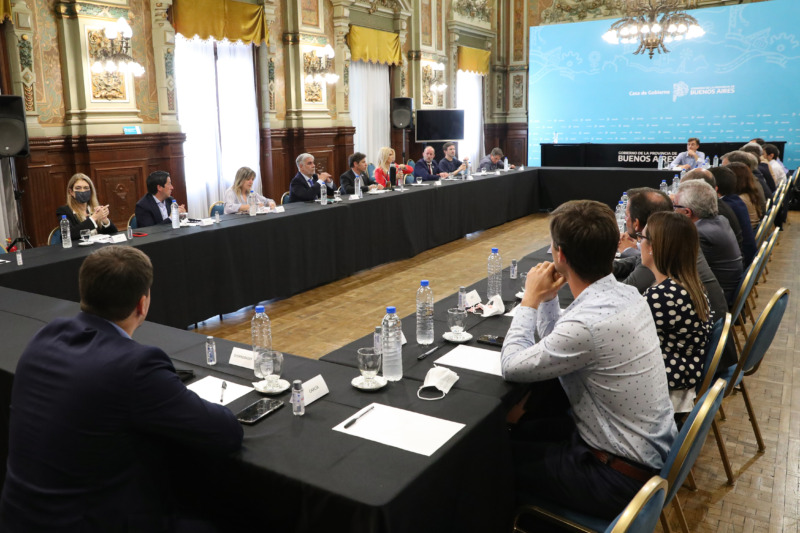 El encuentro se desarrolló en el Salón Dorado de la Casa de Gobierno, junto a la vicegobernadora Verónica Magario; al jefe de Gabinete, Martín Insaurralde; la ministra de Gobierno, Cristina Álvarez Rodríguez; los ministros de Producción, Ciencia e Innovación Tecnológica, Augusto Costa; y de Infraestructura y Servicios Públicos, Leonardo Nardini; la subsecretaria nacional de Acciones para la Defensa de las y los Consumidores, Débora Giorgi; y el titular de la Defensoría del Pueblo de la Provincia, Guido Lorenzino.