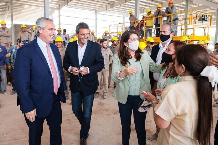 Junto al ministro de Desarrollo Social, Juan Zabaleta; el titular de la Cámara de Diputados, Sergio Massa, y la intendenta de Moreno, Mariel Fernández, el Presidente recorrió empresas conducidas por mujeres en el Parque Industrial Moreno 2, que es el segundo predio fabril promovido desde la Municipalidad. Allí, en el último año y medio, se incorporaron 50 firmas, la mayoría de las cuales tienen al frente a mujeres y están en este momento construyendo sus nuevas instalaciones.