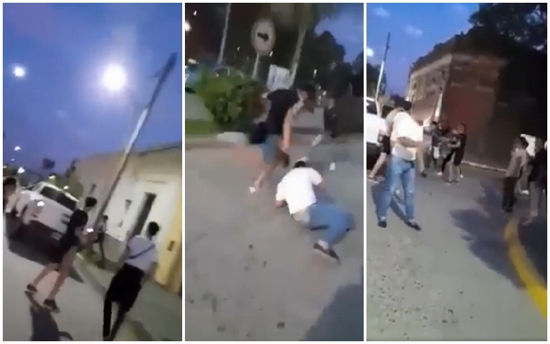 El hecho ocurrió en horas de la mañana de ayer, domingo. La batalla campal de la que participaron varios jóvenes fue grabada en un video tomado por la cámara de un teléfono celular, donde se puede observar a un grupo de jóvenes contra dos personas de una camioneta a patadas y golpes de puño.