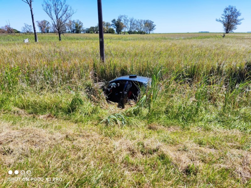 El conductor de un Peugeot 207 por motivos que se intentan determinar, perdió el control del rodado, despistó y posteriormente volcó.