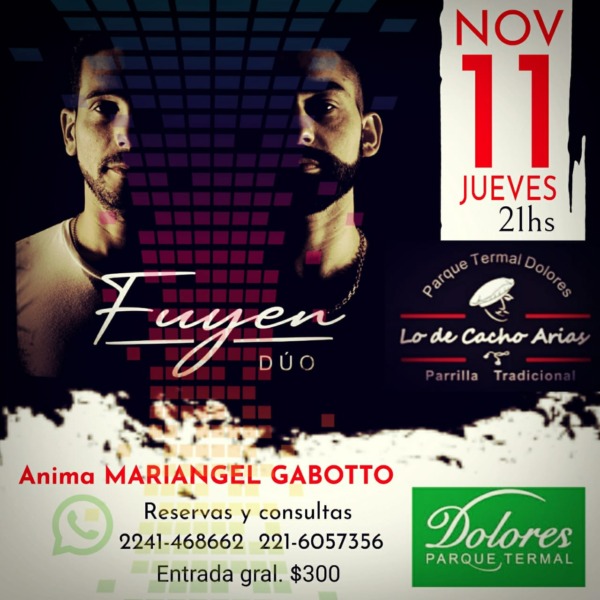 Este Jueves 11 de Noviembre a las 21 hs Fuyén Dúo serán los protagonistas de otra noche de Peñas en la Parrilla del Parque Termal Dolores.
