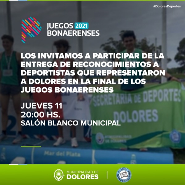 El Intendente Camilo Etchevarren, el Secretario de Deportes José María Cremonte y la Directora de Deportes Cristina Andrada, reconocerán a los deportistas que representaron a Dolores en la final de los Juegos Bonaerenses, que se llevó a cabo en Mar del Plata.